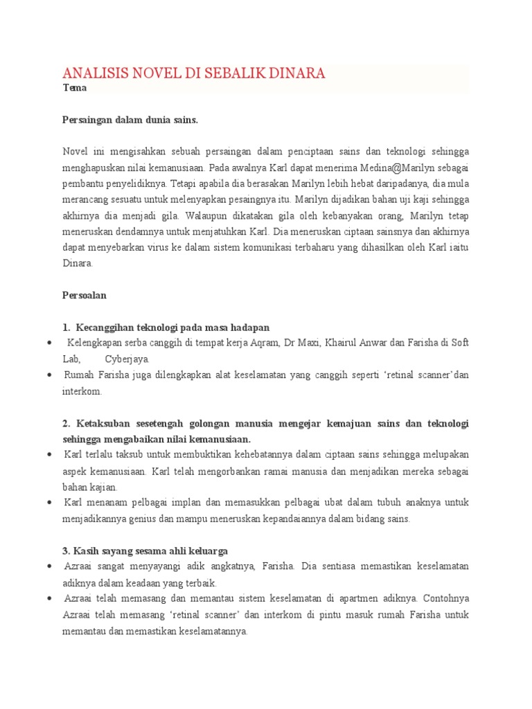 . I Di Sebalik Dinara a Huraikan tema sebuah novel yang telah anda pelajari. 马来小说其实并难为您带来精辟的novel华语解说杰主任 国文网课已经开始授课 欢迎全马各地的小朋友加入. DI SEBALIK DINARA SINOPSIS BAB-6.